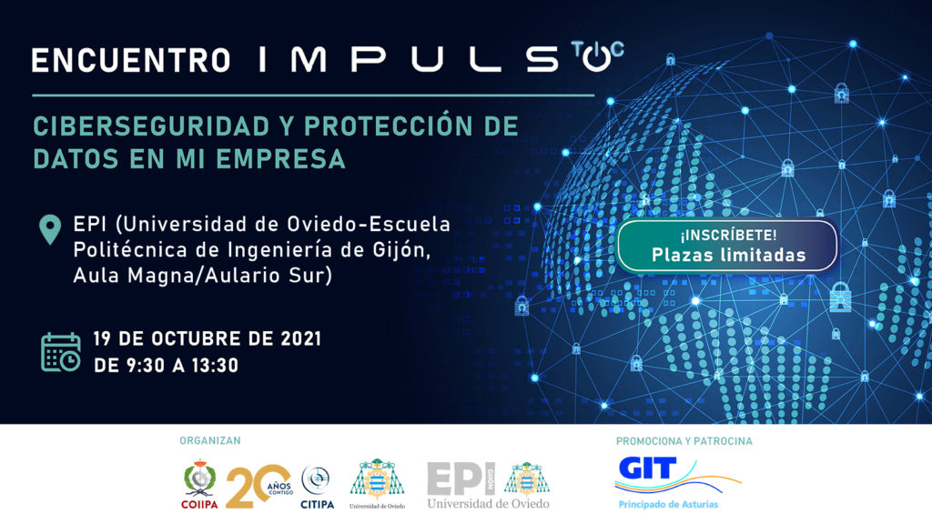 Con el patrocinio y promoción de GITPA (Gestión de Infraestructuras Públicas de Telecomunicación del Principado de Asturias) y la colaboración de la Universidad de Oviedo a través de la Escuela Politécnica de Ingeniería de Gijón, CITIPA y COIIPA (colegios oficiales de ingenieros, graduados e ingenieros técnicos en informática del Principado de Asturias) organizan la jornada monográfica «Ciberseguridad y Protección de Datos en mi Empresa» dentro del capítulo «Encuentros Impulso TIC» enmarcado en la iniciativa global «Impulso TIC».